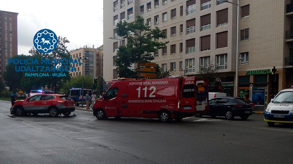 Según informa la Policía Municipal de Pamplona, que ha atendido el siniestro, el vehículo policial circulaba por la Avenida de Bayona procedente de la Plaza Juan XXIII en dirección hacia Monasterio de Velate con los prioritarios encendidos, es decir con la sirena y el sistema luminoso funcionando para abrirse paso en la circulación.