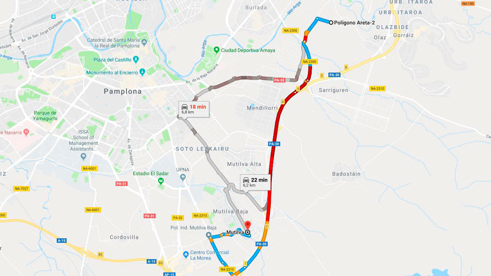 De hecho, las retenciones han llegado hasta el Polígono Areta, en Huarte, lo que supone más de 6 kilómetros de atasco. Actualmente la ronda de Pamplona se encuentra totalmente abierta.