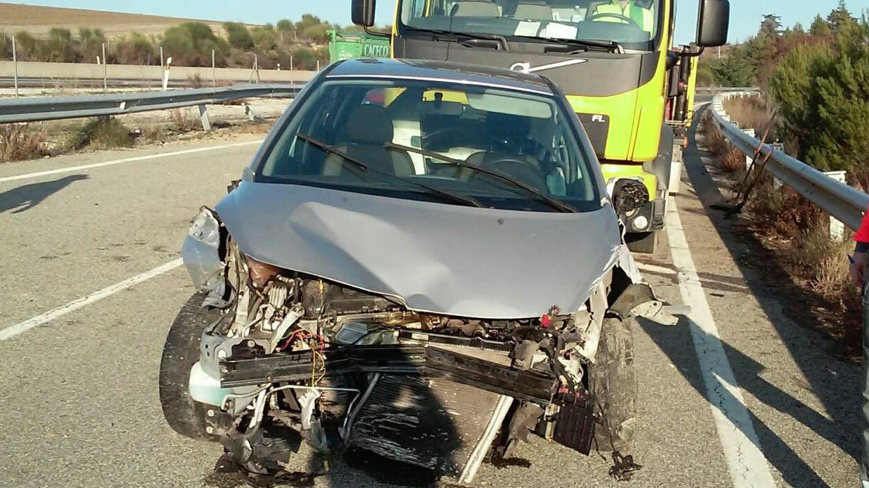 El accidente se ha producido después de que un conductor perdiera el control de su coche y se saliera de la vía, dañando la parte frontal del vehículo como se puede comprobar en la fotografía superior a estas líneas.