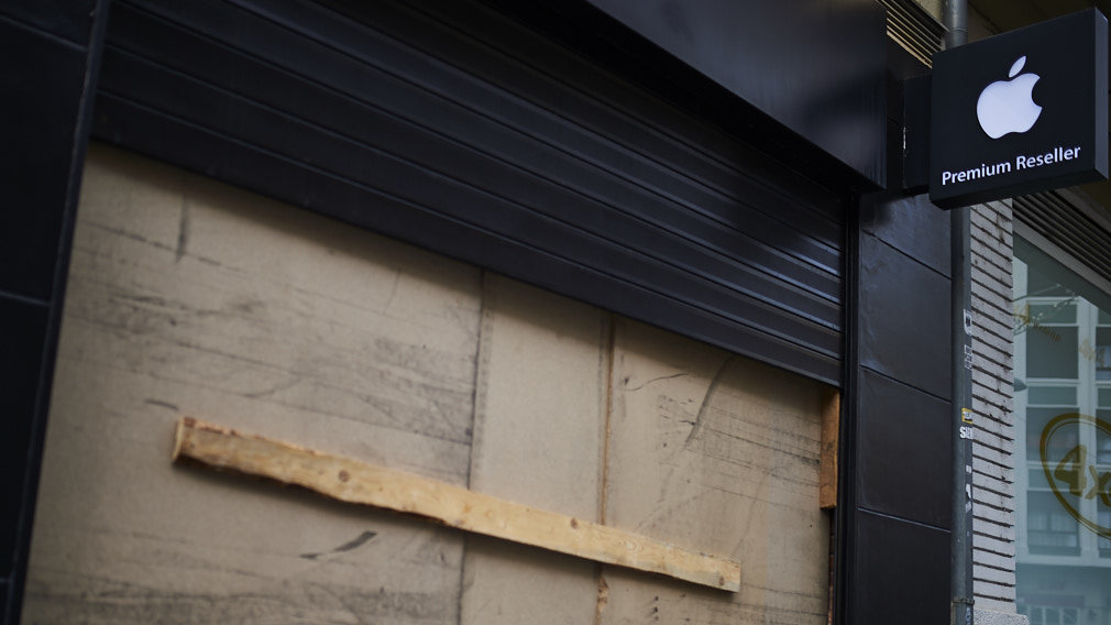 Según las primeras investigaciones, el ladrón o el grupo de ladrones ha empleado un vehículo para romper los cristales de la tienda de Apple y tratar de colarse en su interior.