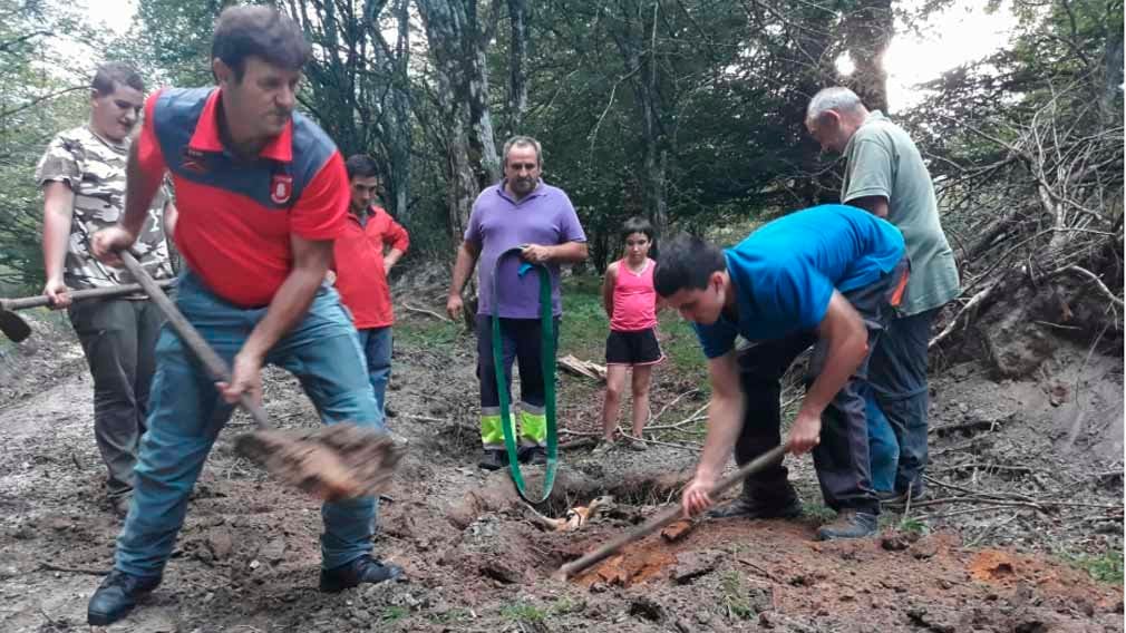 En las labores de retirada de tierra, la Brigada y los ganaderos propietarios del animal junto con sus hijos se han se han organizado a turnos de pala. Finalmente, tras más de dos horas de intenso trabajo, han podido liberar a la vaca a las 21.15 horas.