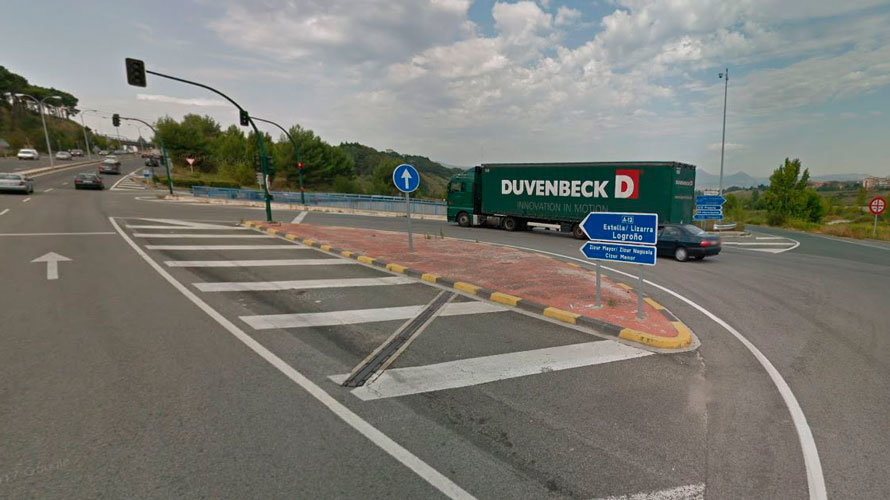 El vehículo se encontraba incorporándose por la avenida de Aróstegui hacia la A-15 en dirección Landaben (como muestra la fotografía de abajo) cuando el conductor ha perdido el control y la villavesa ha girado sobre sí misma para terminar volcando.