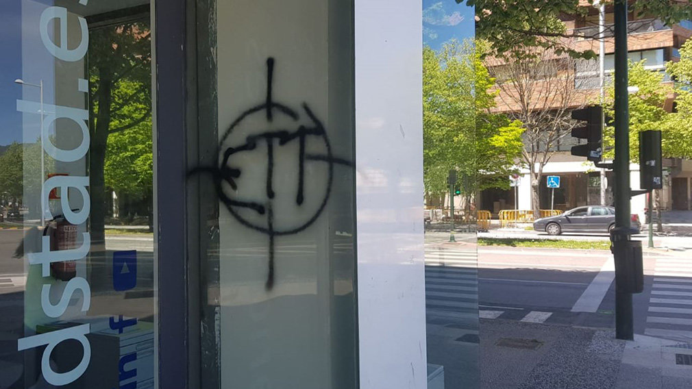 Una agencia de trabajo temporal ha resultado atacada este miércoles, 1 de mayo, en Pamplona con varias pintadas vandálicas.