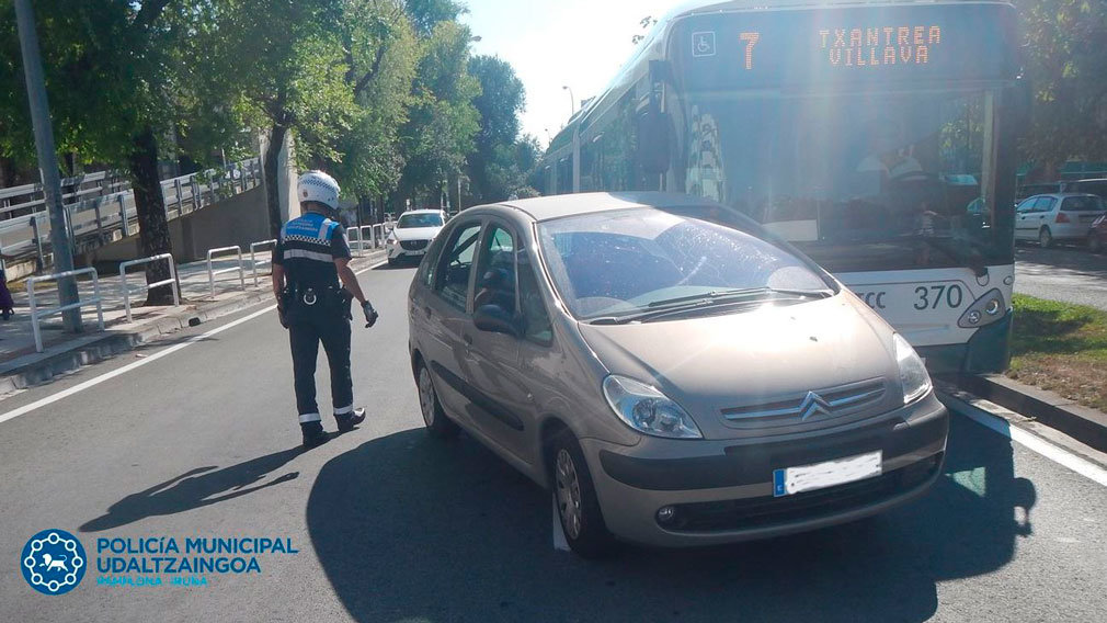 Una mujer de 45 años también colisionó contra una villavesa en la avenida de Barañáin.