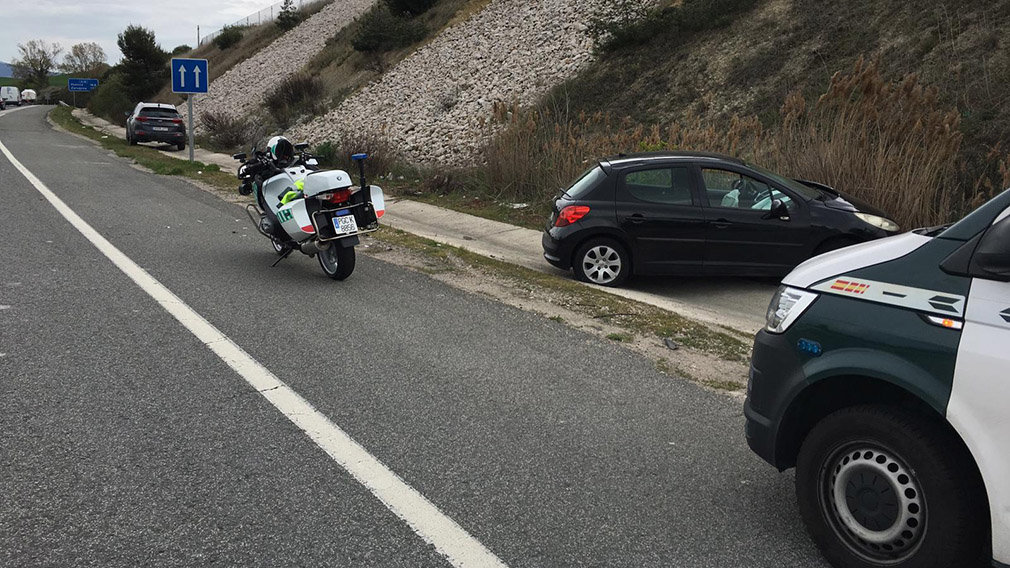 El suceso se ha producido a las 14.45 en el kilómetro 88 de la A-15. Una patrulla de la Agrupación de Tráfico de la Guardia Civil de Navarra se ha encargado de las diligencias y regulación del tráfico.