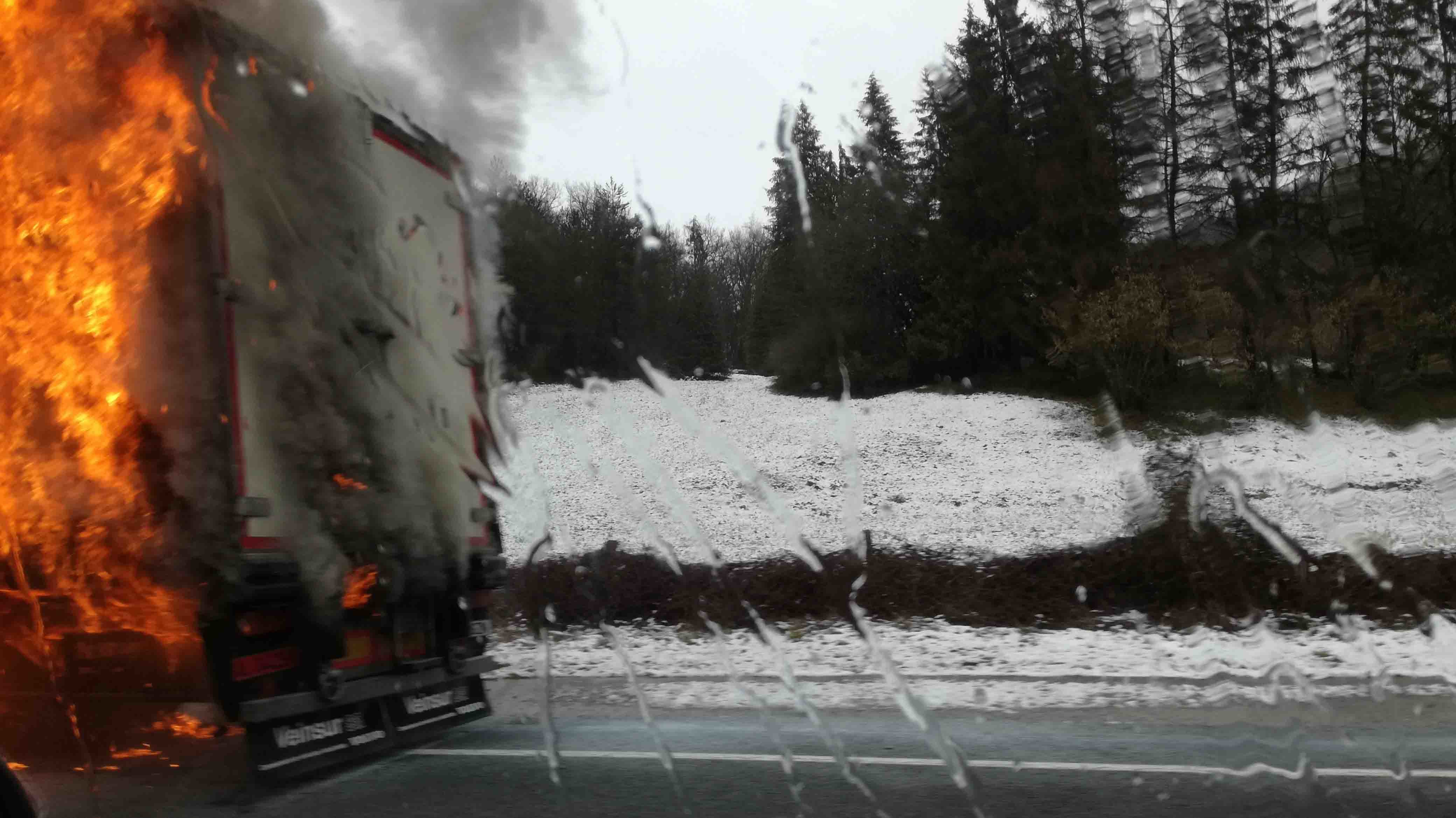 De la nieve al fuego: un camión de verduras arde en plena carretera en Olagüe