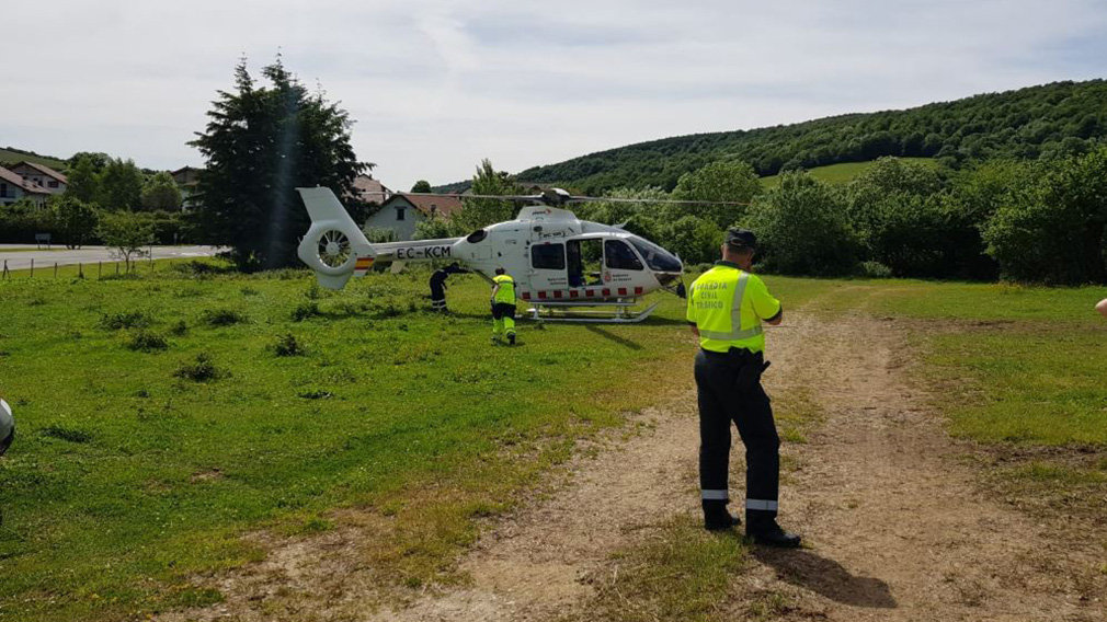 Por ello, hasta allí ha viajado también un helicóptero, en el que se ha evacuado al herido hasta el Complejo Hospitalario de Navarra, han apuntado las mismas fuentes de la Benemérita.