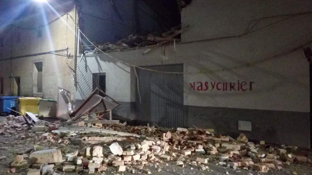 Un edificio de Falces ha sufrido esta pasada madrugada de miércoles a jueves el derrumbe de una de sus plantas, justo encimo de donde se sitúa un obrador.