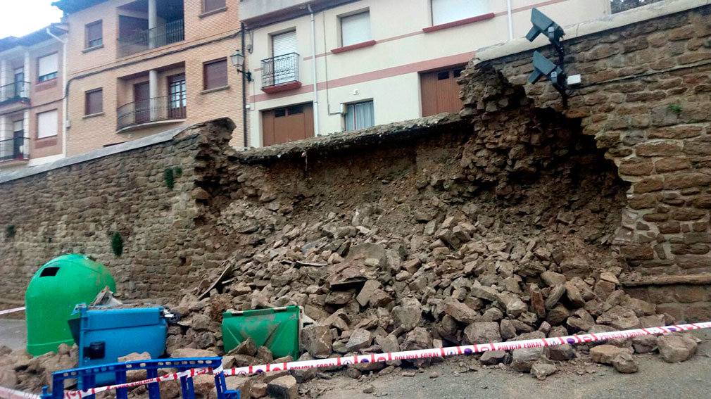 Asimismo, el muro que da acceso a la iglesia de San Miguel de Larraga se ha venido abajo sin que, afortunadamente, se hayan registrado heridos.