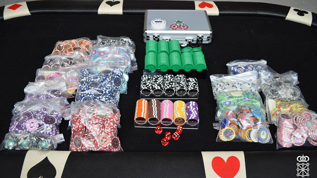 Imagen del material incautado, fichas y cartas de póker, en el local clandestino clausurado en Ansoáin. POLICÍA FORAL