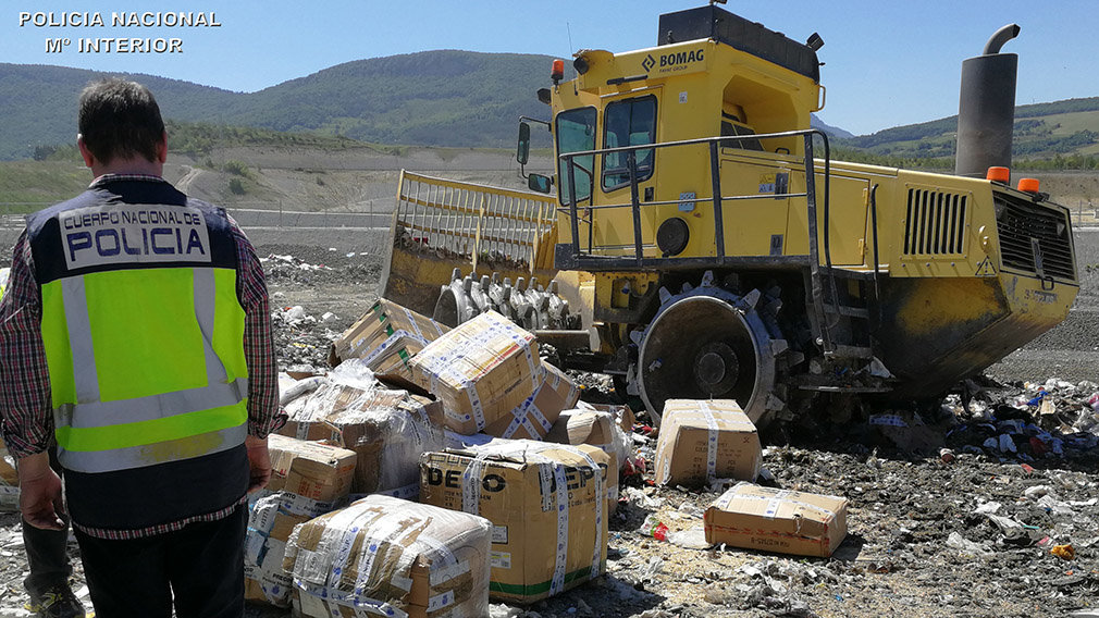 Una vez obtenida la correspondiente autorización judicial, se ha procedido a la destrucción de este material en un Centro de Tratamiento de Residuos Urbanos de una empresa servicios de la Comarca de Pamplona aunque se ha remitido una cantidad de muestras para su peritaje.