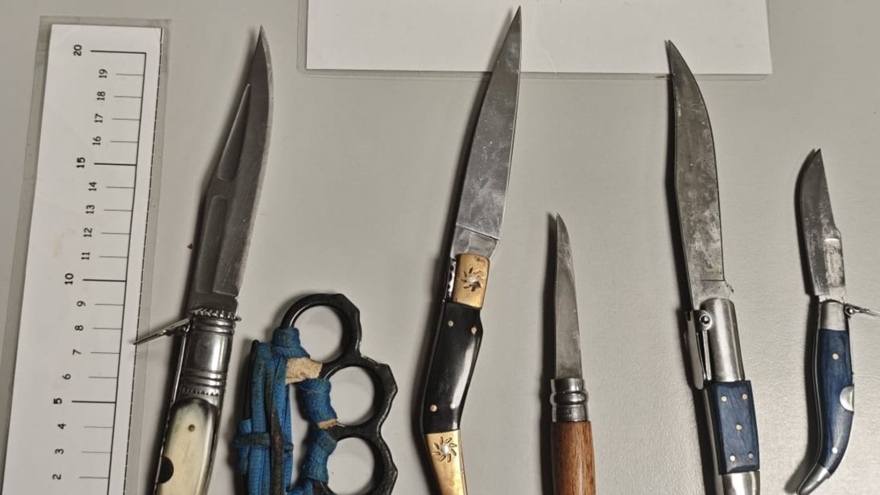 Dos hombres han sido imputados en Pamplona este fin de semana por tenencia y uso de armas blancas en las inmediaciones de una discoteca del barrio de San Juan. Las patrullas de la Policía Foral acudieron al lugar tras varios incidentes y decomisaron las armas que portaban los implicados, ambos con antecedentes por lesiones y tenencia de armas.
