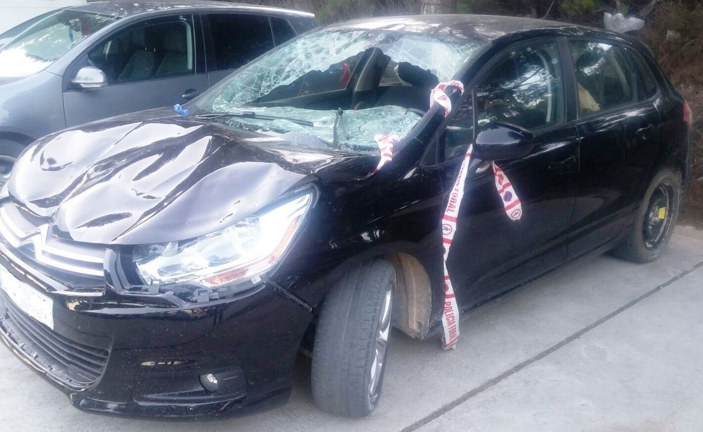 Tal y como se ve en la fotografía, el coche es un Citroen C4 de color negro que terminó con la luna delantera reventada, además de presentar otros daños en la chapa del coche. La imagen está tomada en el garaje de Milagro donde vive el autor de los hechos con sus padres. En estos momentos, se encuentra en prisión sin fianza.