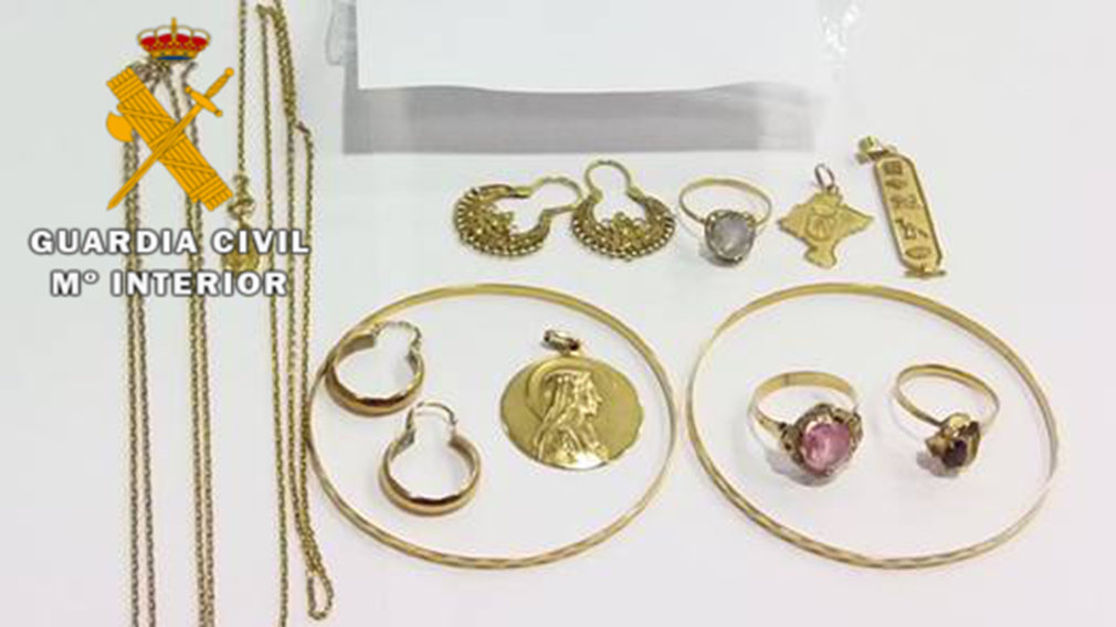 Las joyas que se han podido recuperar con un valor aproximado de 3.000 euros. GUARDIA CIVIL