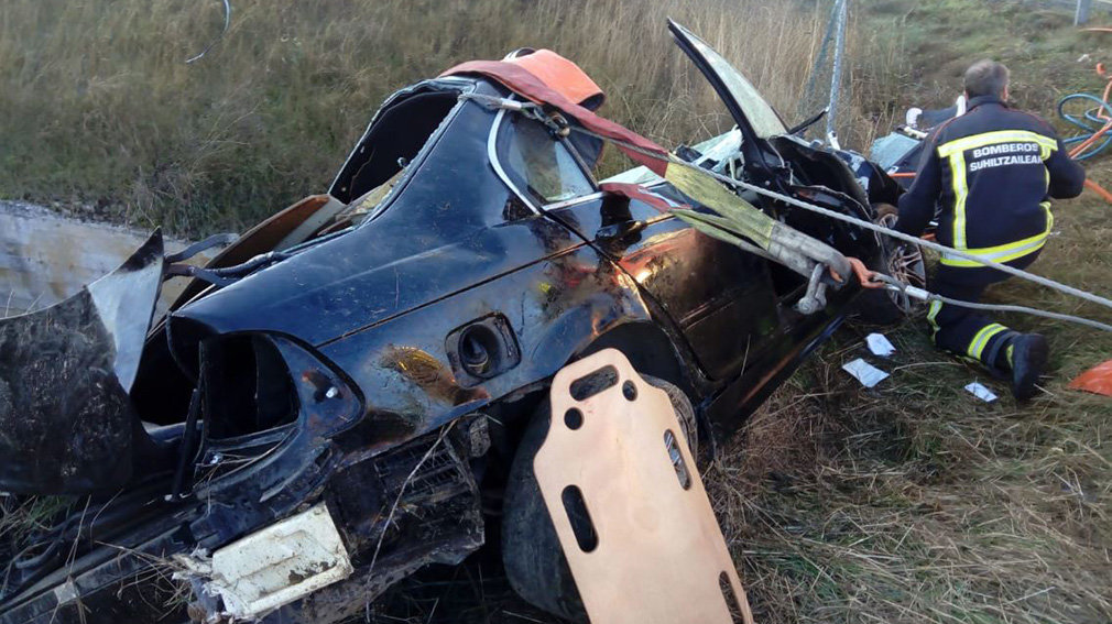 Según ha explicado la Policía Foral, el coche se ha salido de la vía por el margen izquierdo de la autopista mientras circulaba en sentido Tudela. Después, ha colisionado contra la mediana, ha volcado, ha colisionado contra la barrera metálica de seguridad y ha caído en la cuneta. La persona herida es un hombre de 19 años, vecino de Pamplona.