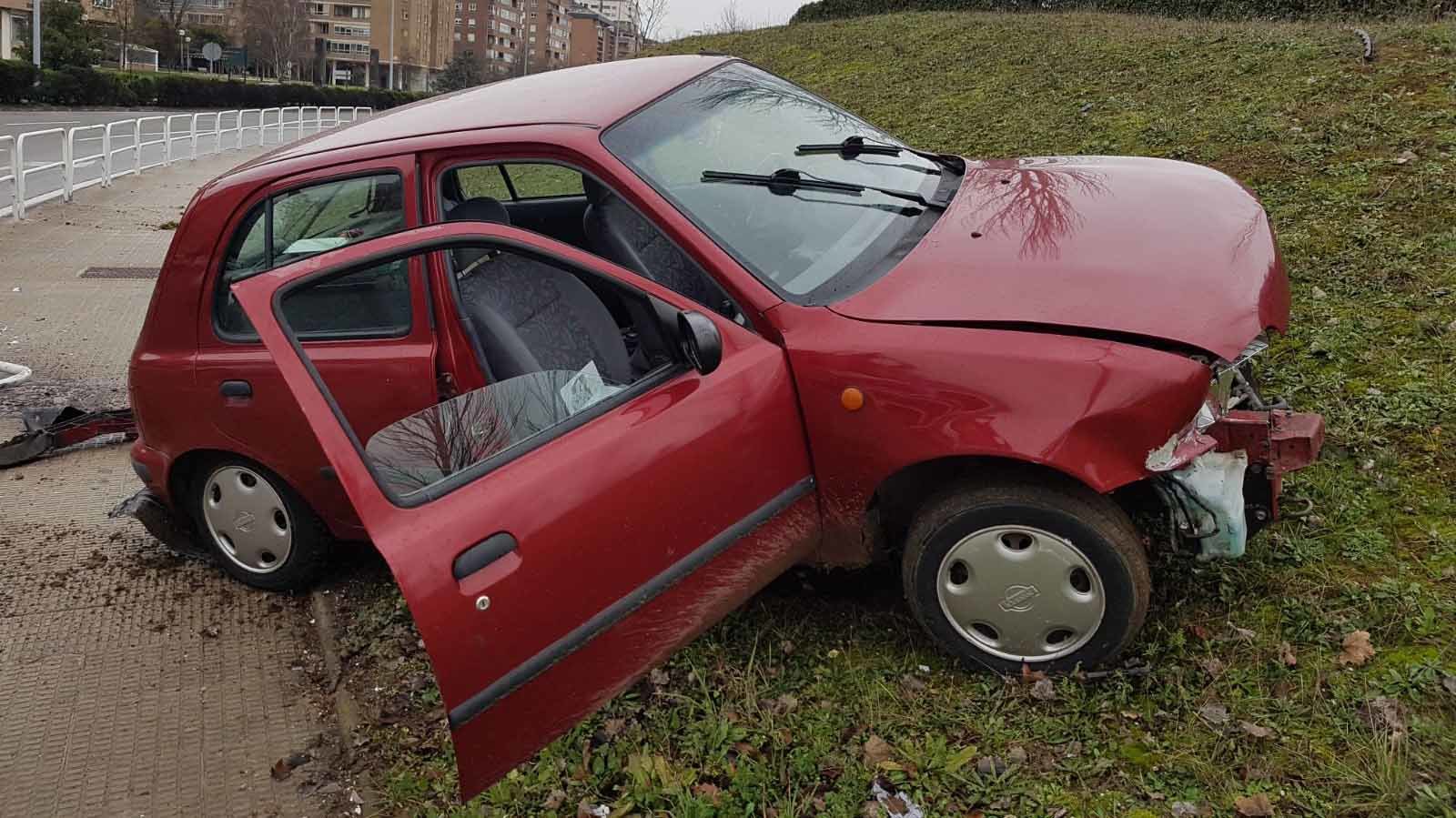Asimismo, y al mediodía del lunes, un vehículo se salió de la vía en la avenida de Navarra, justo en el cruce con la calle Íñigo Arista. Una conductora de 30 años chocó y arrancó dos vallas de protección de la acera, terminando su trayectoria en la zona ajardinada de la Universidad de Navarra, tal y como se puede ver en la imagen que sigue.