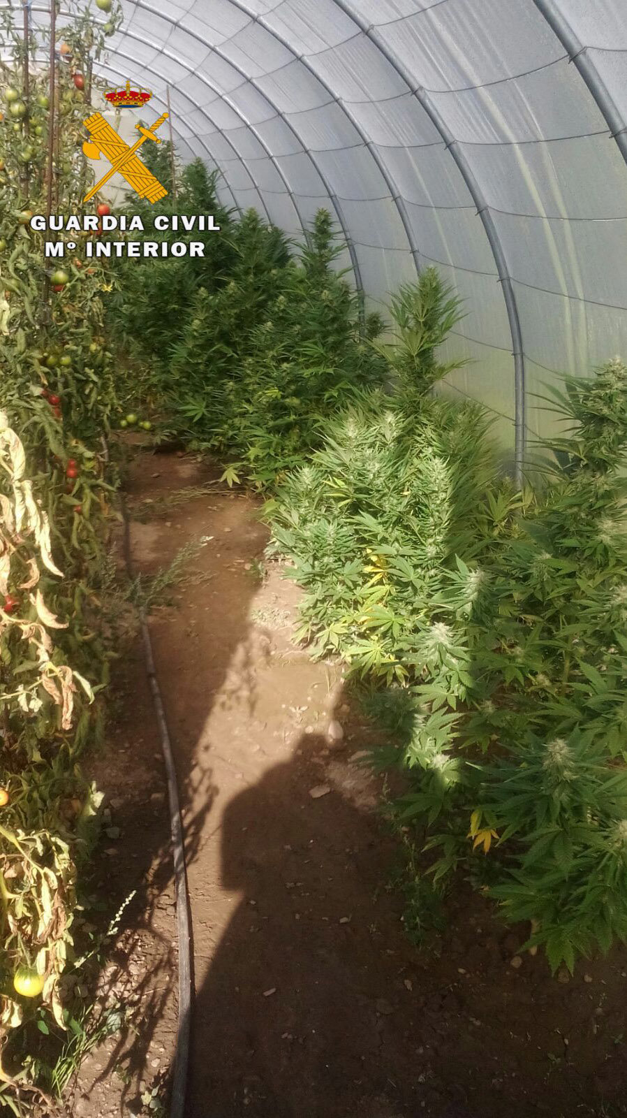 Los guardias civiles comprobaron que se aprovechaba la presencia de maíces de elevada altura y de los plásticos del invernadero para ocultar estas plantas.
