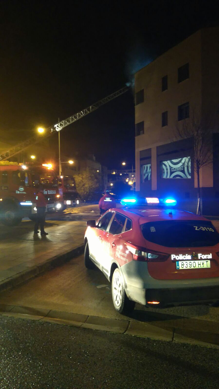Hasta el lugar se han desplazado dotaciones de bomberos de los parques de Estella y Lodosa, así como patrullas de la Policía Foral. Los bomberos han procedido a la extinción de las llamas que se habían originado dentro de la chimenea, al calcinarse el material aislante de la misma. Por precaución se ha decidido desalojar a los vecinos de un bloque de viviendas situado encima del local de ocio, para evitar que pudieran producirse heridos especialmente por inhalación de humo tóxico.