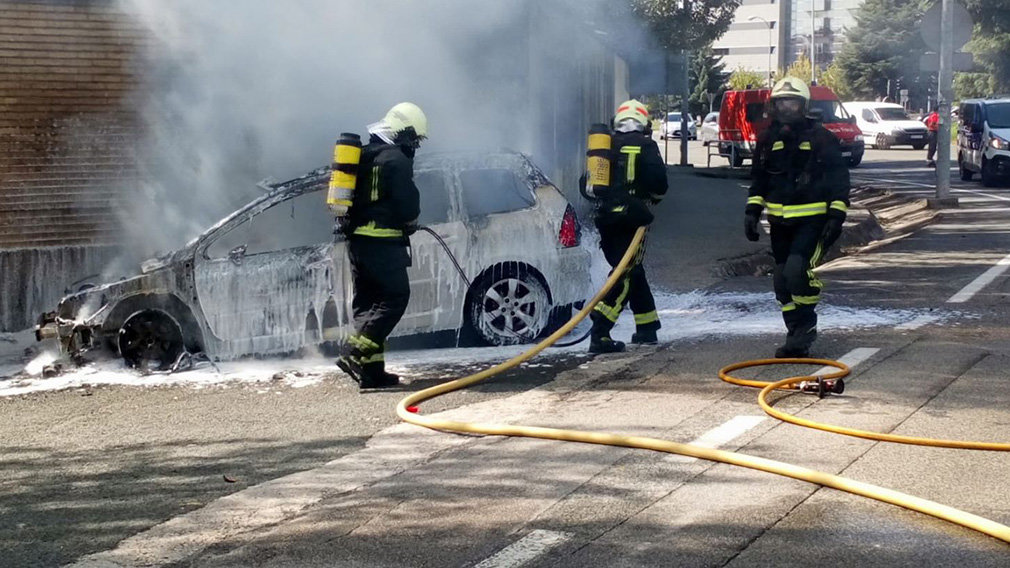 Además, tanto los agentes policiales como los bomberos del Parque de Trinitarios han tenido que intervenir para apagar un segundo fuego declarado en un vehículo situado en una rotonda de Burlada.