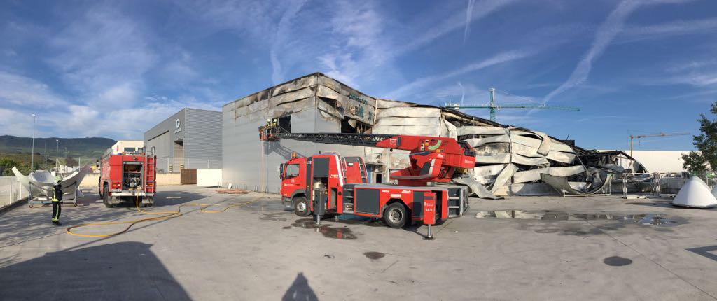 La gran combustibilidad del poliéster ha provocado que el fuego se extendiera en pocos minutos con llamas que han generado temperaturas muy elevadas. Tanto las paredes de la fábrica como el techo se han hundido y las estructuras metálicas no han resistido el calor.