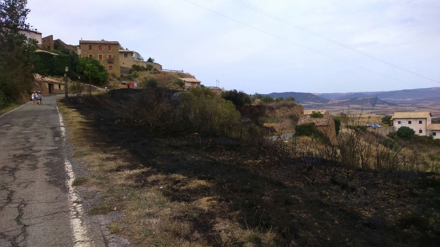 Incendio a las puertas de Gallipienzo: los bomberos sofocan unas llamas en las cercanías del pueblo