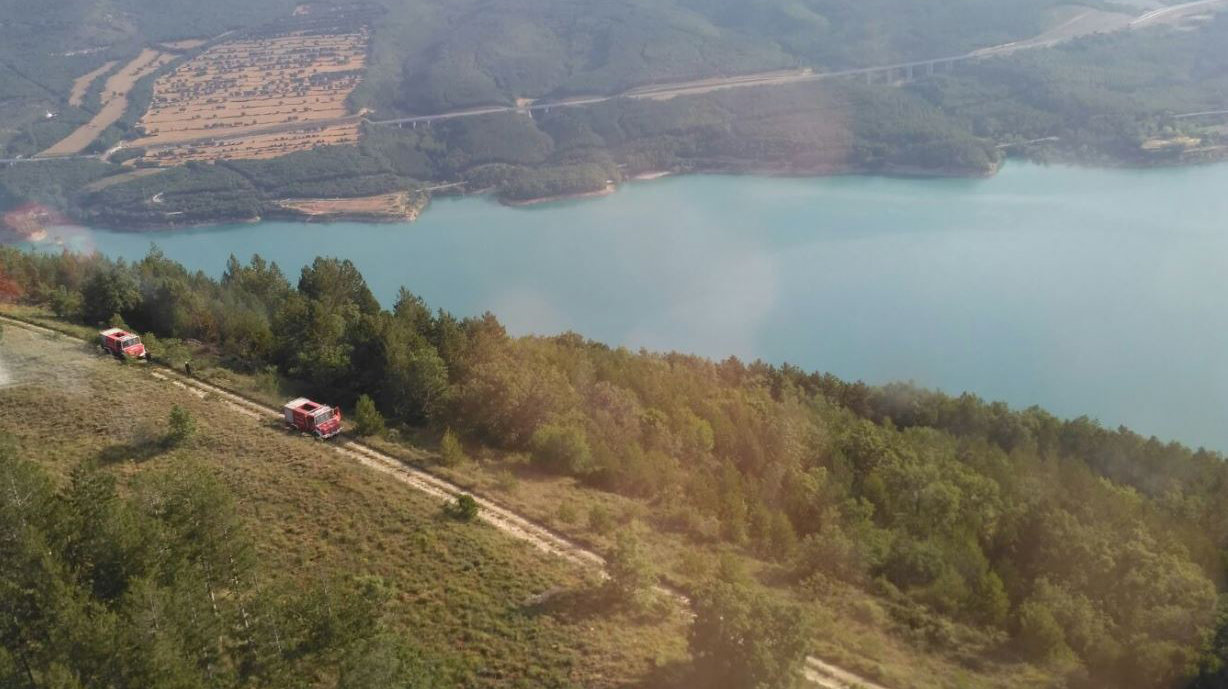 Un incendio declarado en Yesa, cerca del Monasterio de Leyre, en un pinar entre la muga de Navarra y Aragón, ha movilizado este domingo a los bomberos de ambas comunidades, que han podido controlar las llamas en torno a las 9 y media de la mañana.