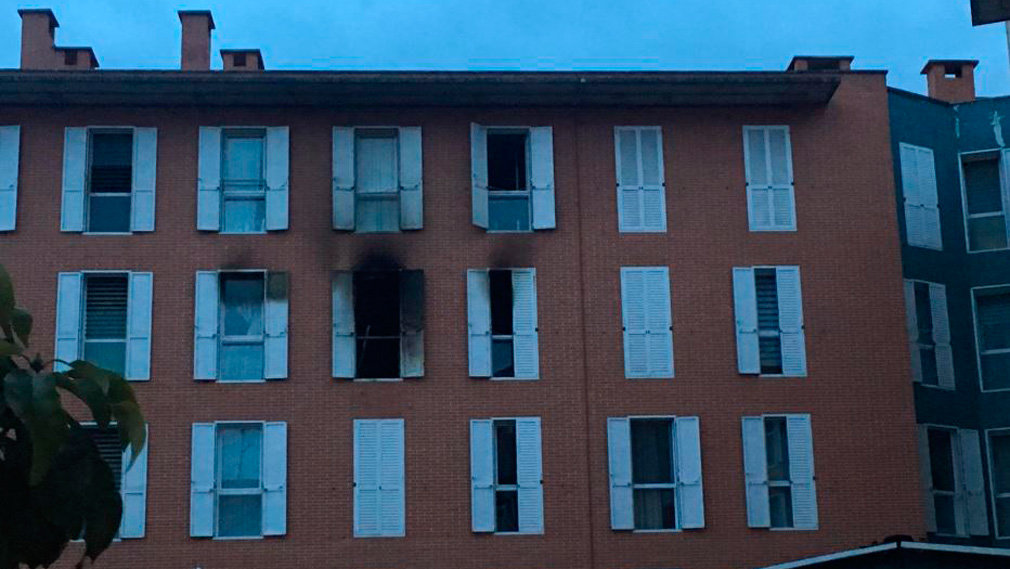 Herido un hombre en un gran incendio en un piso de la Rochapea que ha obligado a desalojar a varios vecinos