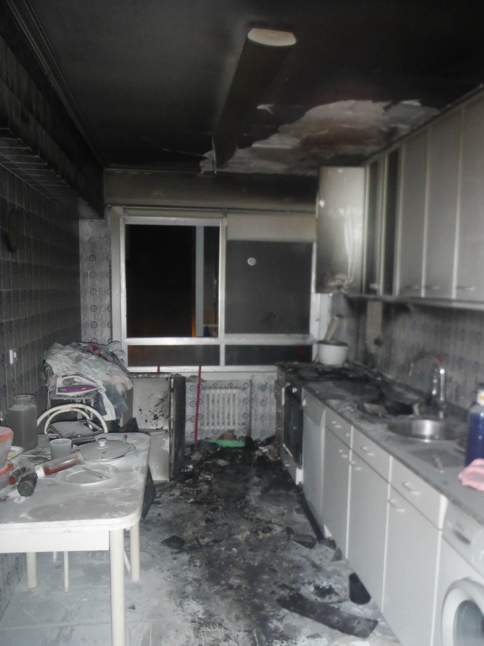 No han pasado la noche en la casa debido a la importante cantidad de humo y a los grandes desperfectos ocasionados en toda la vivienda, principalmente donde se inició el fuego (se puede observar el estado en el que ha quedado la cocina en la imagen superior).