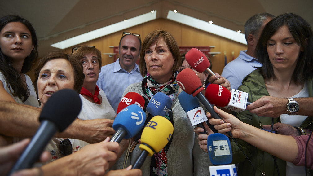 La presidenta del Gobierno foral en funciones, Uxue Barkos, atiende a los medios por el desastre de Tafalla.MIGUEL OSÉS