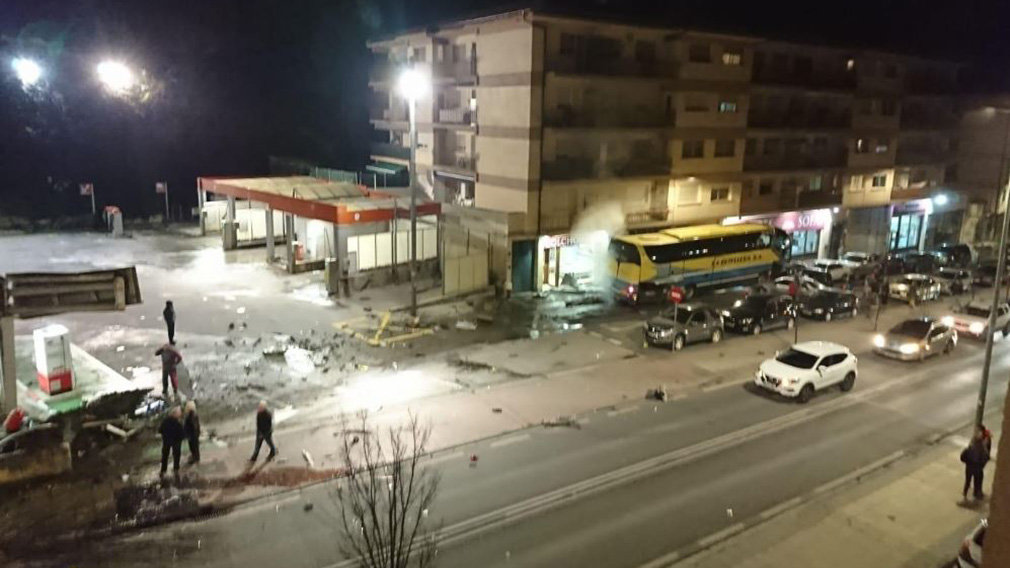 Según han informado fuentes del Gobierno de Navarra, un autobús de la Estellesa ha perdido el control alrededor de las 20 horas y ha colisionado contra la gasolinera situada en la rotonda de la calle Carlos VII y ha empotrado a un coche contra la tienda del establecimiento. Ha seguido al parecer sin control y ha atropellado a un peatón colisionado además con una quincena más de turismos.