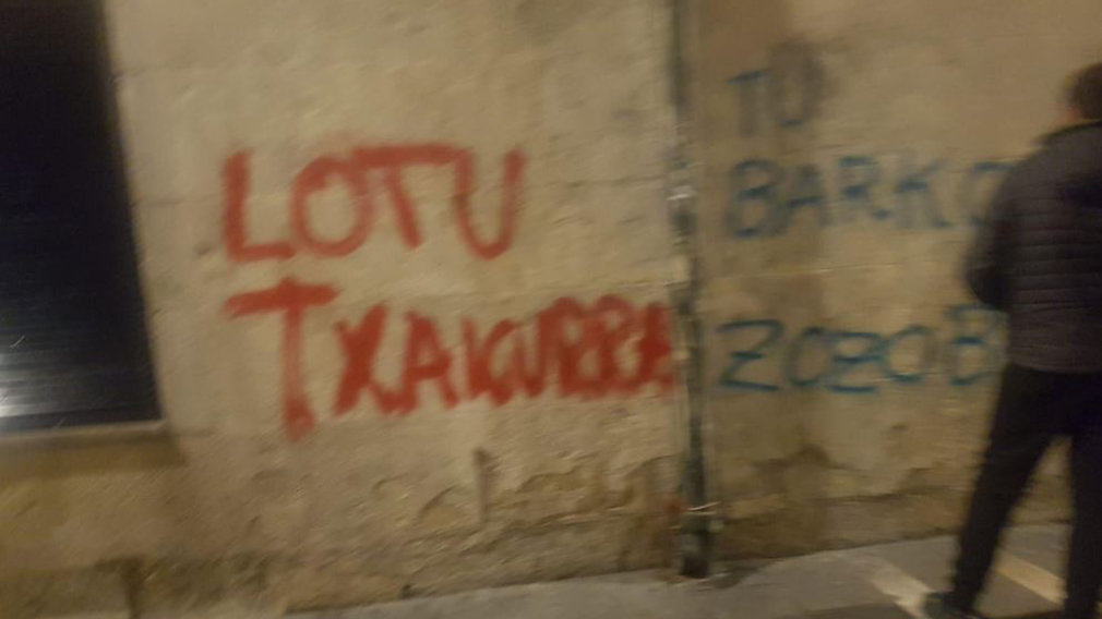 Los primeros días, en la fachada de la sede de la formación aparecieron pintadas críticas hacia su persona, con el texto "se os hunde el Barkos" y varias dianas con las siglas de UPN y PNV, y mensajes en los que clamaban que "el Casco Antiguo no está en venta".