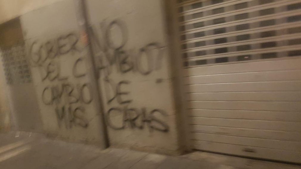 Conforme avanza la semana y las protestas subían de tono, con enfrentamientos diarios contra agentes de la Policía Nacional y de la Policía Foral que vigilaban la entrada del edificio, el Casco Viejo de Pamplona fue recibiendo más pintadas en sus calles.