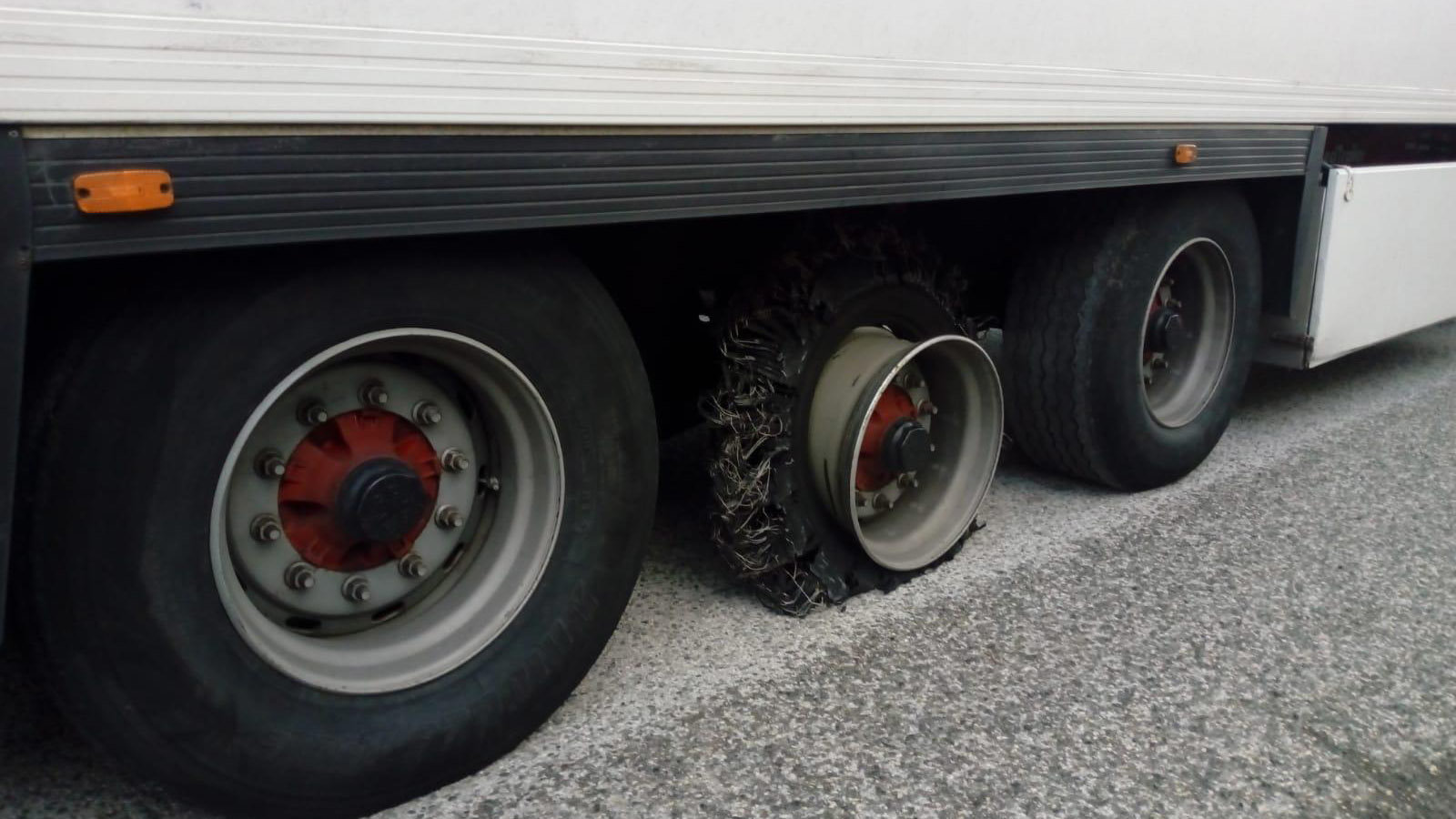 El camionero indicó a los agentes, sobre el neumático reventado, que en Francia había oído un ruido, pero que no le había dado importancia.