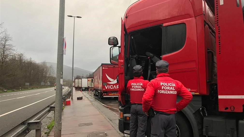 La Policía Foral ha inmovilizado en la carretera N-121-A a un camionero, vecino de Murcia de 44 años, que se dirigía a Madrid, por dar positivo en drogas, viajar sin cinturón de seguridad y circular con un neumático reventado.