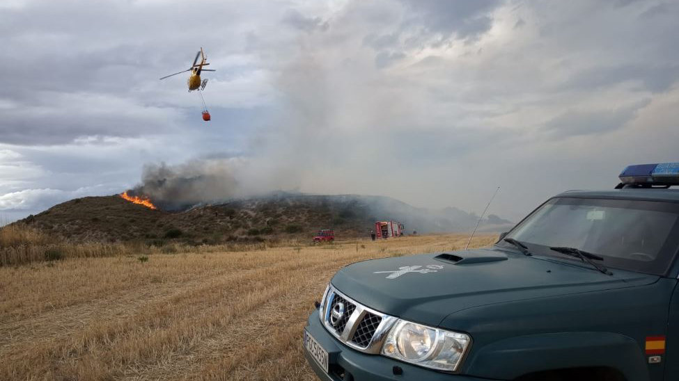 Bomberos y cuerpos policiales trabajando en la extinción del incendio de Arróniz.GUARDIA CIVIL