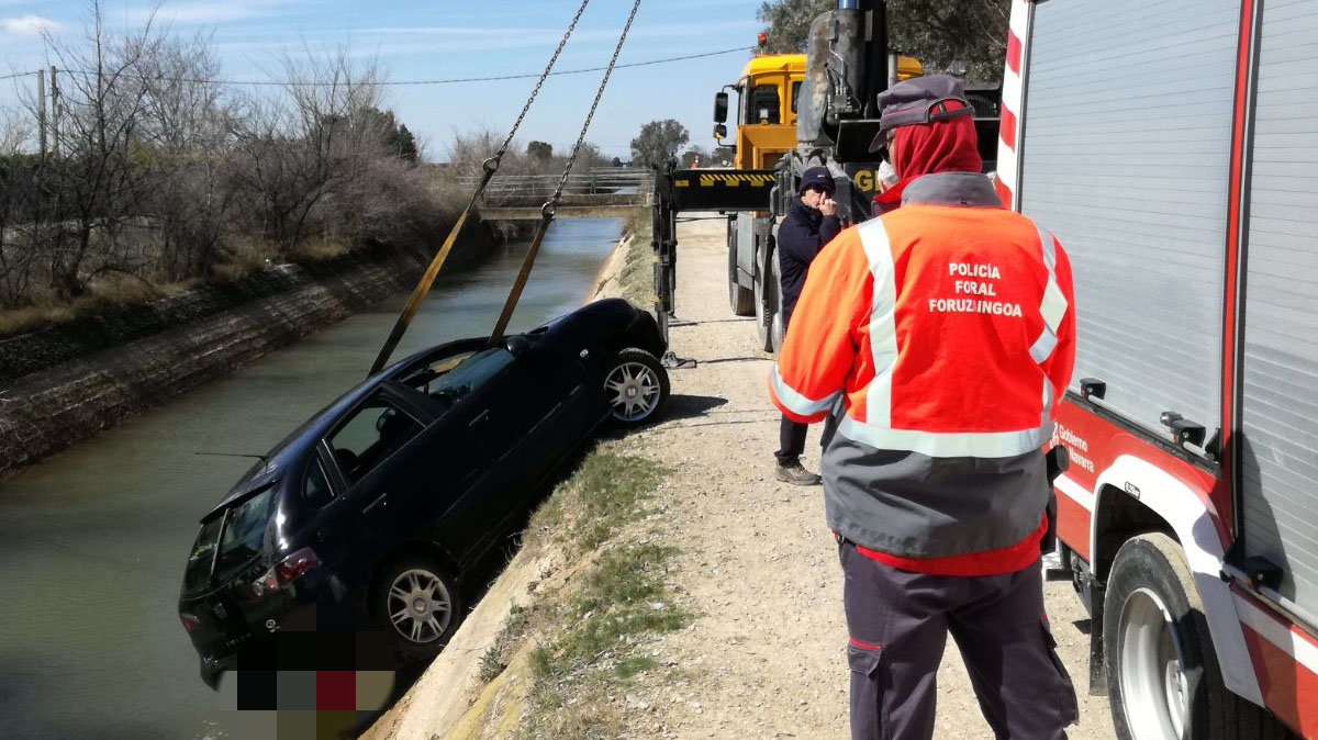 En un primer momento se ha comprobado que no había ningún ocupante en el interior del coche hundido. Tras esta comprobación, la Policía Foral y el grupo de rescate acuático de los bomberos han procedido a extraer el turismo del agua.