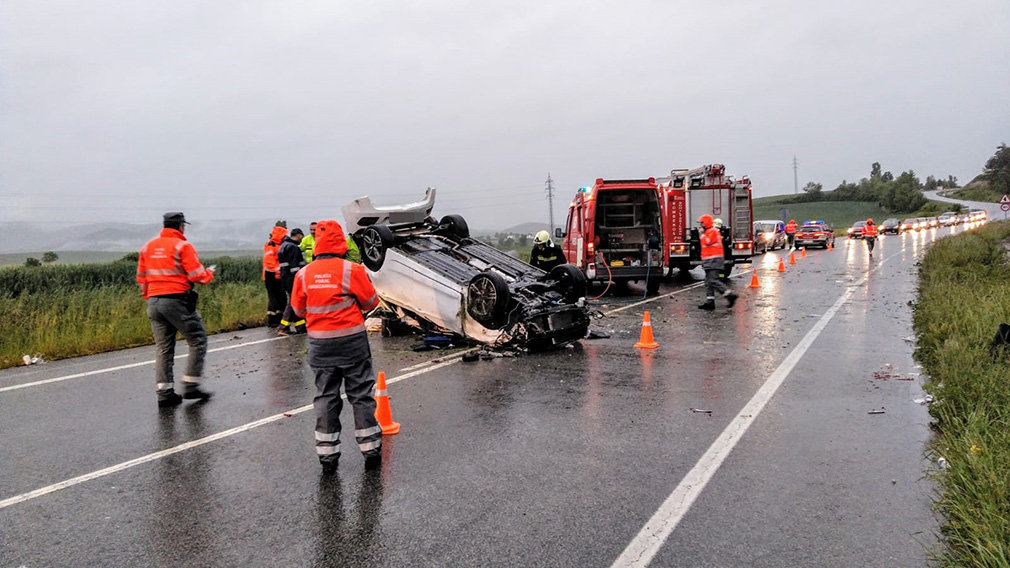 La Policía Foral ha pedido precaución a todos los conductores, especialmente ante la presencia constante de lluvia y el peligro de la calzada mojada.