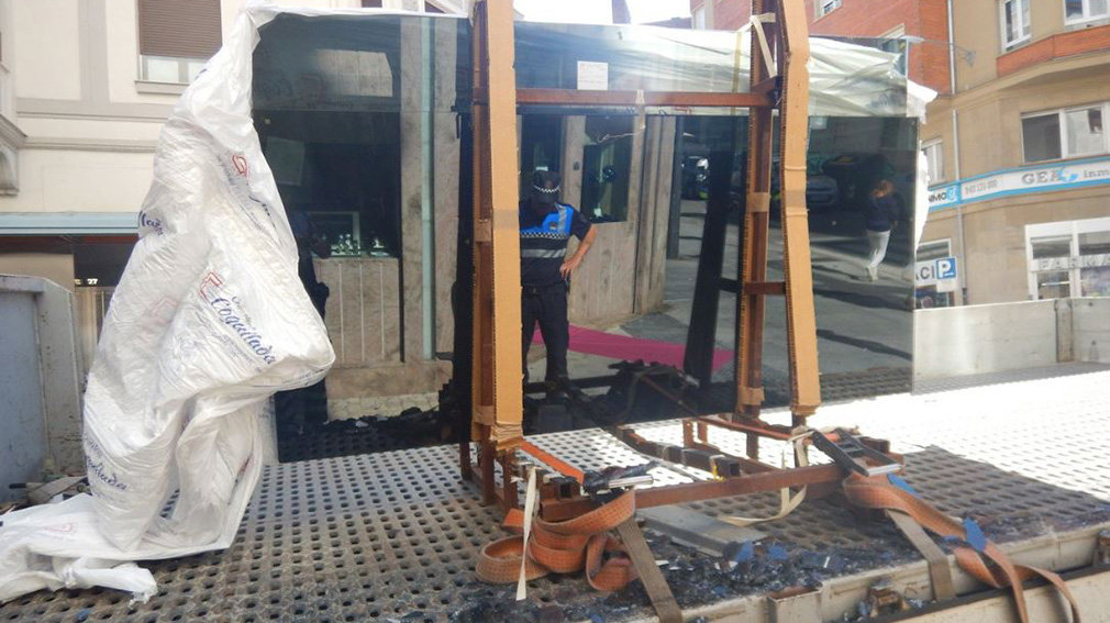 Tres trabajadores han resultado heridos durante la descarga de unos cristales desde un camión. Los hechos han ocurrido en torno a las 12.35 horas a la altura del número 27 de la calle Arrieta, en el cruce con la calle Bergamín del centro de la capital.