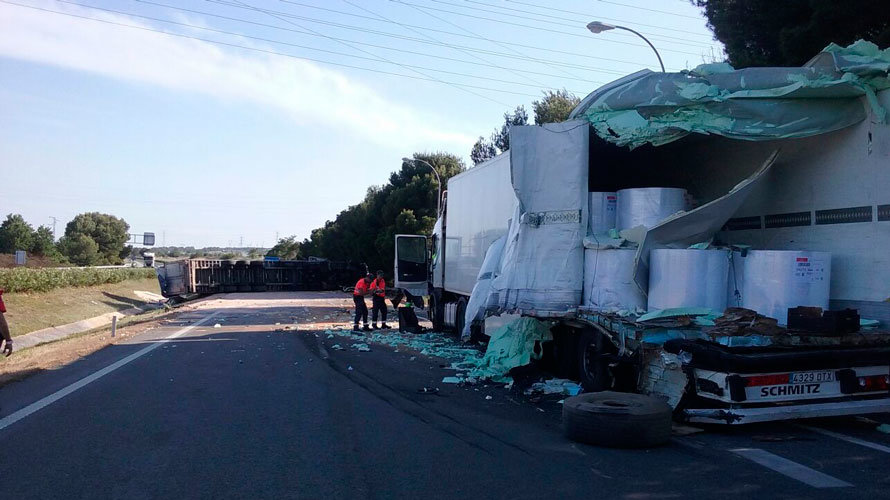 Como puede apreciarse en las imágenes que acompañan a esta información, el vehículo que se ha llevado la peor parte de los dos camiones siniestrados portaba harina y tras el choque ha quedado totalmente cruzado en la calzada impidiendo la circulación.