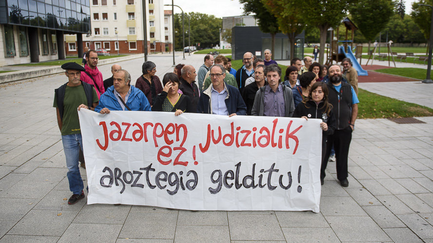 Con motivo de su declaración, cargos de EH Bildu y vecinos de Baztan se han concentrado a las puertas del Palacio de Justicia de Pamplona, tras la pancarta 'Jazarpen judizialik ez! Aroztegia gelditu!' (No a la persecución jucial. Parar Aroztegia), para apoyar al alcalde y a la exalcaldesa. Entre ellos, se encontraba el portavoz parlamentario de Bildu, Adolfo Araiz.