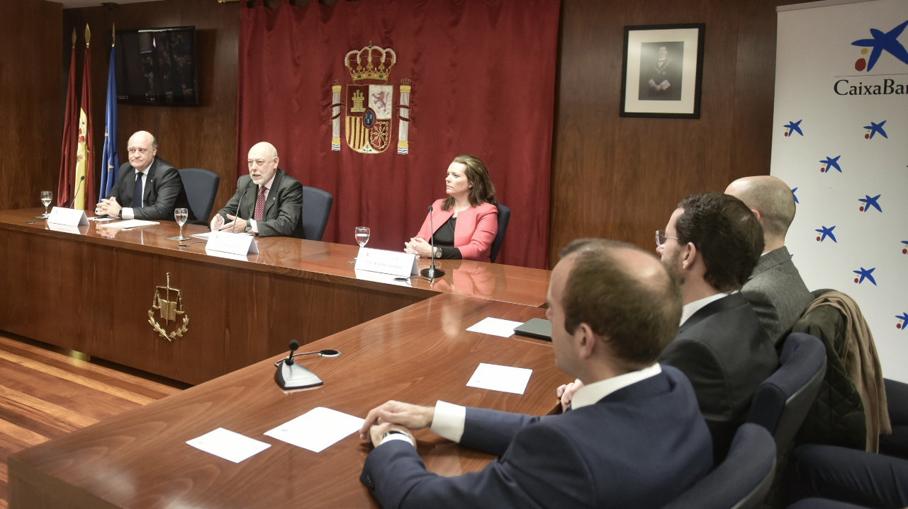El fiscal general del Estado ha impartido este viernes en Pamplona una conferencia bajo el título 'Modificaciones procesales: la instrucción por el fiscal', una charla organizada por el Tribunal Superior de Justicia de Navarra (TSJN) y CaixaBank, a la que han asistido, entre otros, la presidenta del Parlamento foral, Ainhoa Aznárez; la delegada del Gobierno en Navarra, Carmen Alba; la directora general de Justicia del Gobierno foral, Lourdes Aldave; y el presidente del TSJN, Joaquín Galve.
