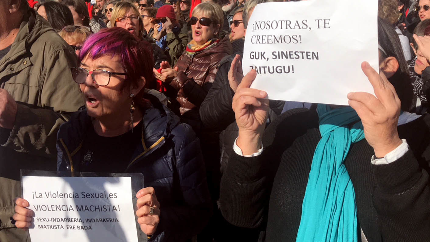 Debido a los gritos de esta concentración, que se situó a las puertas del Palacio del Justicia, la sesión del juicio tuvo que ser suspendida de 12 a 13 horas, aproximadamente. Entre sus consignas, se pudieron escuchar mensajes de la apoyo a la víctima, como "yo sí te creo" o "juicio a los imputados. No a la víctima".