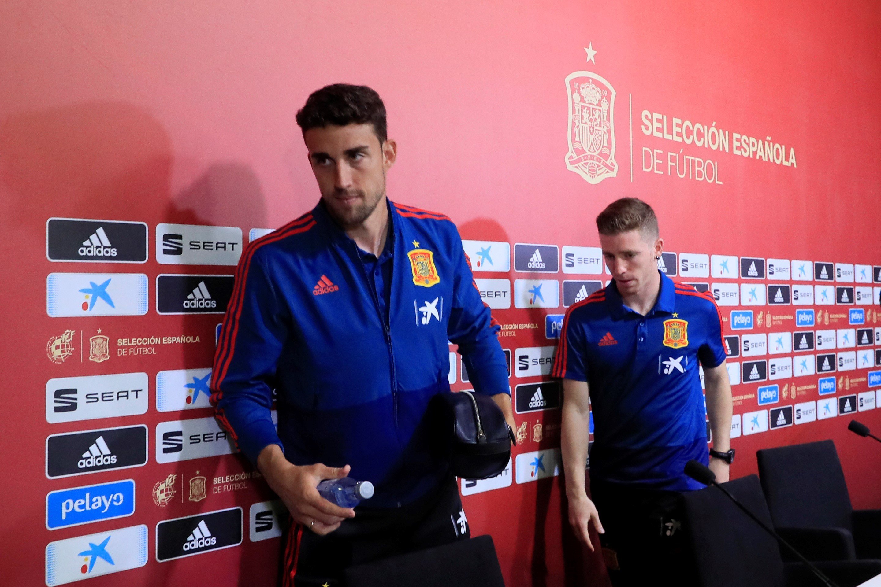 Jaime Mata comparece en rueda de prensa junto al pamplonés Íker Muniáin en la concentración de la selección española de fútbol. EFE