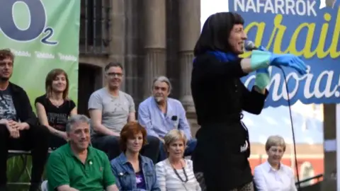 El socio del PSOE, el del partido de la Eta, Jabalí, al que le han regalado la alcaldía quitando a una mujer que se arreglaba mucho, ya saben, premió a la autora de semejante soflama feminista con un concierto sanferminero en cuanto agarró el fálico bastón de mando. Hay que joderse con la lucha contra el matxismoak de esta gentutzilla.